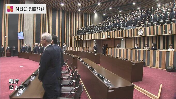 年度末の29日、長崎県庁では、退職する職員の辞令交付式が行われました。