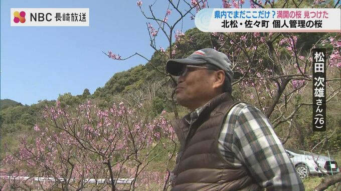 桜を管理しているのは松田次雄さんです。東京で園芸会社を営んでいましたが、16年前にふるさとの佐々町にUターン。その時、これらの桜を植え大切に育ててきました。