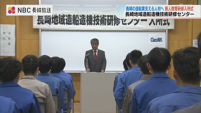 長崎の基幹産業である造船業の人材育成を図るための「研修センター」の入所式が2日朝、行われました。