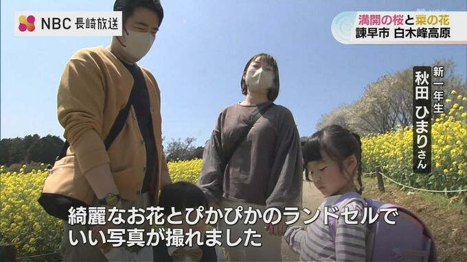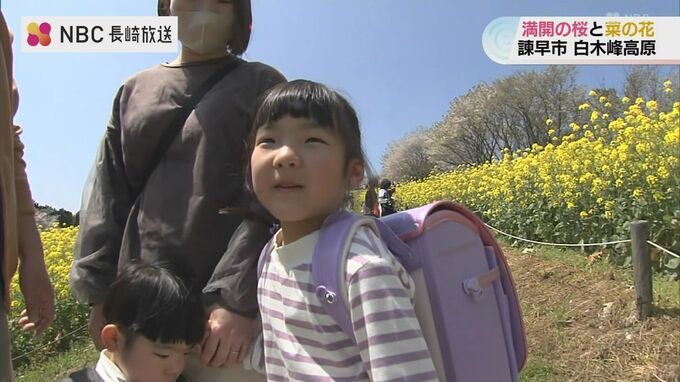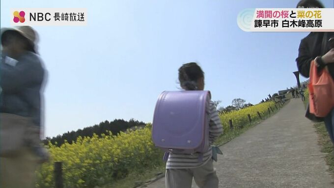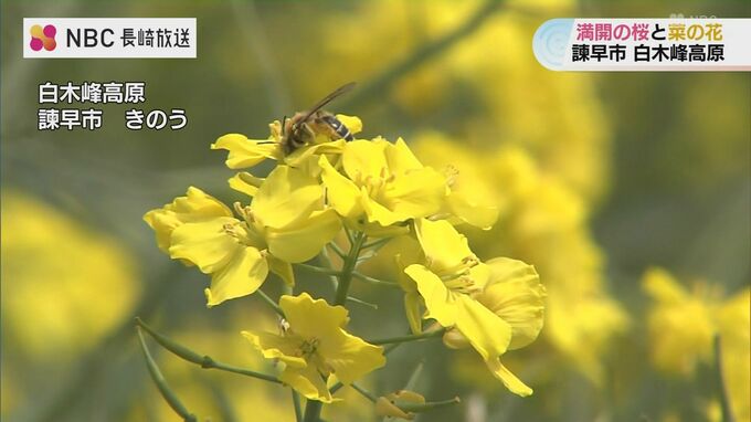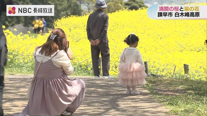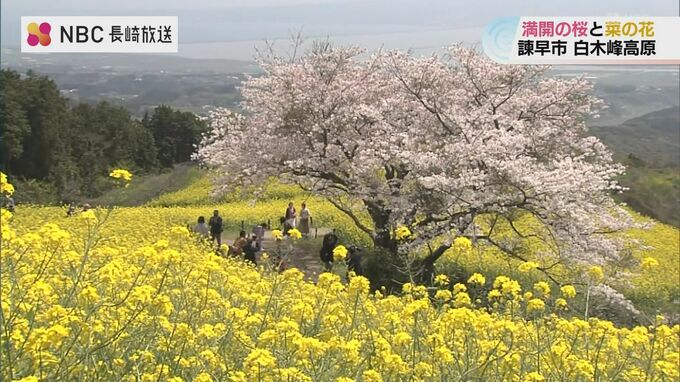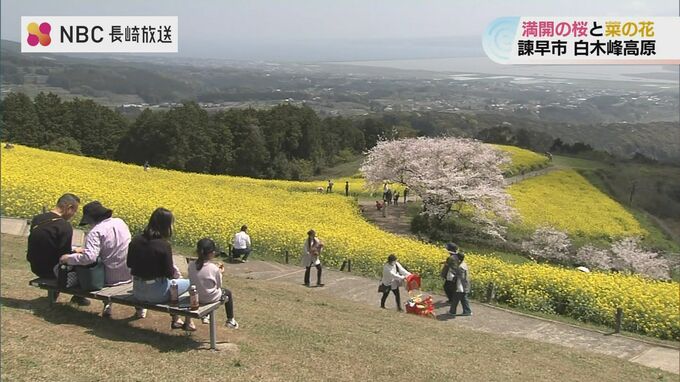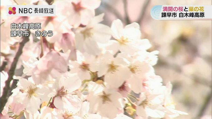 長崎県諫早市の白木峰高原ではいま、桜と菜の花が満開を迎え訪れる人を楽しませています。