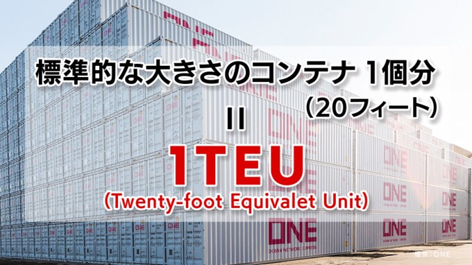 標準的な大きさのコンテナ1個分を1TEU(Twenty-foot Eqiavalet Unit)と数えます。長崎港では、2022年度に輸出では1,277、輸入では3,362が取り扱われています。