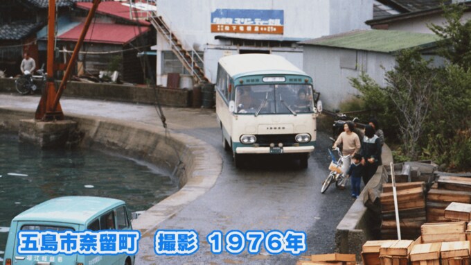 1976年、長崎県五島市奈留町で撮影されたものです。こちらも道路のすぐ脇、向かって左側は海です。