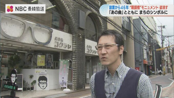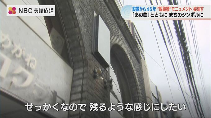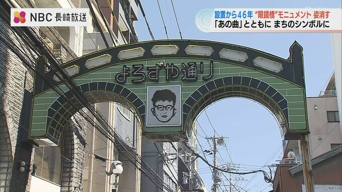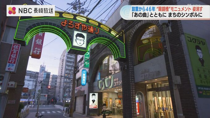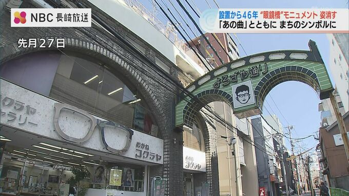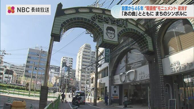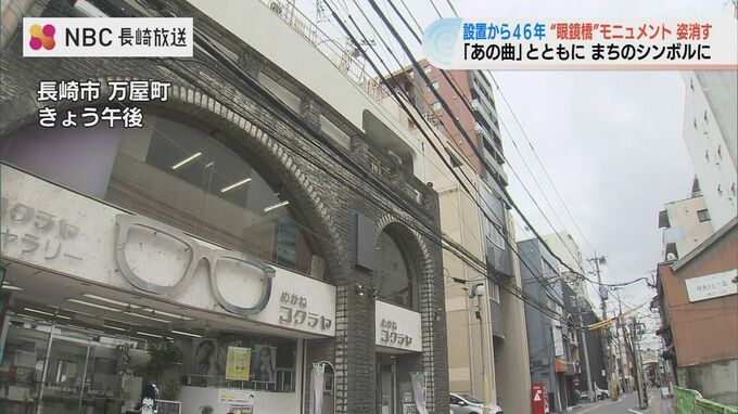 長崎市万屋町の通りを彩っていた《まちのシンボル》ともいえるモニュメントが2024年3月末、その姿を消しました。眼鏡橋をモチーフにしためがね店のモニュメントの撤去に、市民からは惜しむ声も聞かれました。