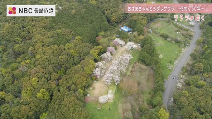 2回目は長崎市琴海村松町の夫婦が営むキャンプ場の桜です。89歳になる管理人の女性が約50年にわたって大切に育ててきたシダレザクラとソメイヨシノです。