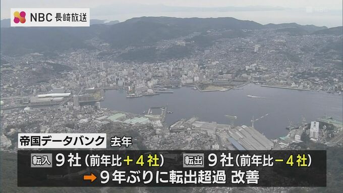 帝国データバンクによりますと、2023年に長崎県内に転入した企業は前の年より4社多い9社、県外に転出した企業は前の年より4社少ない9社と同数となり、9年ぶりに転出超過の状態が改善されました。