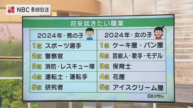 新小学1年生「将来就きたい職業」親が「就かせたい職業」ランキング ランドセル製造・販売の「クラレ」アンケート 2024年4月10日(水) 20:50 国内 ランドセルを製造・販売する「クラレ」が、この春、入学する子どもとその親、4,000人を対象に「将来就きたい職業」を聞きました。男の子はここ3年間1位だった「警察官」を抜いたのは「スポーツ選手」です。大谷選…