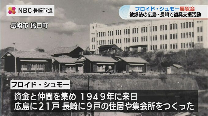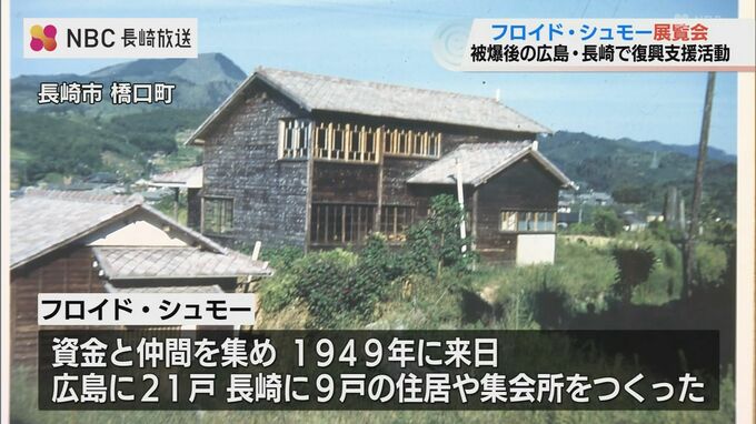 原爆投下後の広島や長崎で住まいを失った人々のために家を建てる活動をしたアメリカ人・フロイド・シュモー氏らの足跡を紹介する展覧会が長崎市で開かれています。