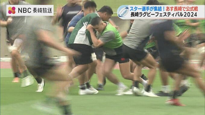 13日から始まる長崎ラグビーフェスティバルを前に、世界で知られるスター選手が顔をそろえました。長崎市で行われるラグビー国内最高峰「リーグワン」の公式戦に出場する両チームが12日、前日練習に臨みました。