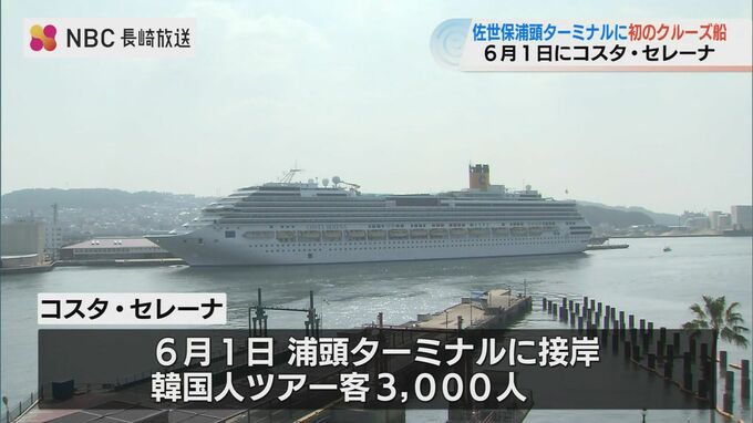 佐世保市港湾局によりますと「コスタ・セレーナ」は6月1日朝、韓国人ツアー客 3,000人を乗せて佐世保港浦頭ターミナルに接岸する予定です。