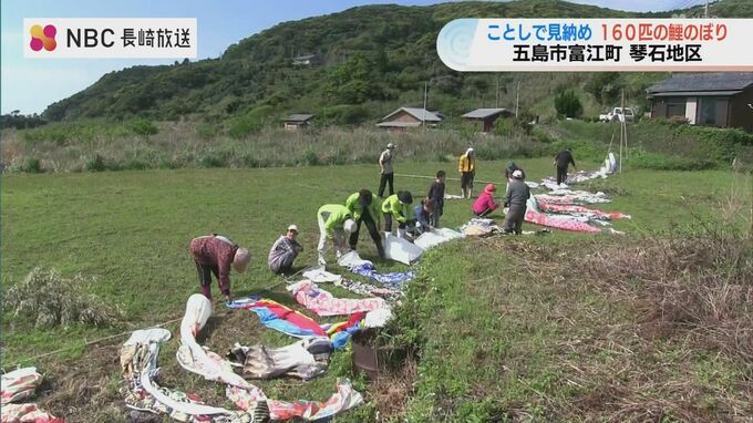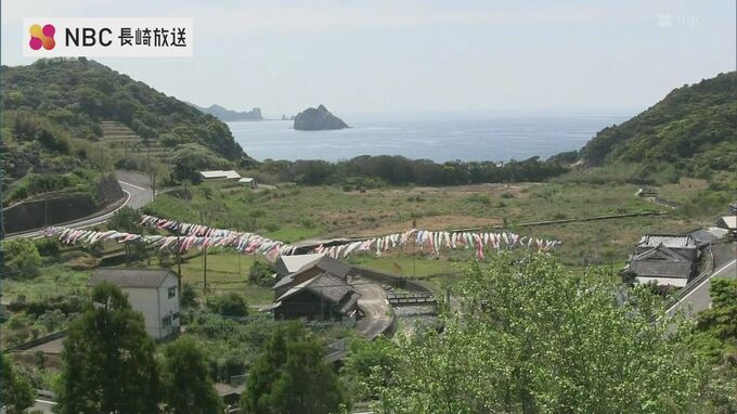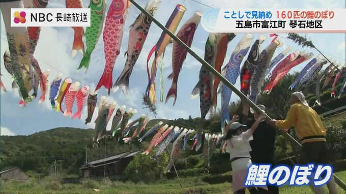 5月5日の端午の節句を前に、長崎県五島市の山あいにある琴石地区では、約160匹の鯉のぼりが優雅に空を泳いでいます。