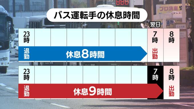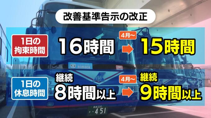 例えば、バス業界では、拘束時間の上限が1日16時間から15時間に短縮され、1日の休息時間が継続8時間以上から9時間以上に変更されました。