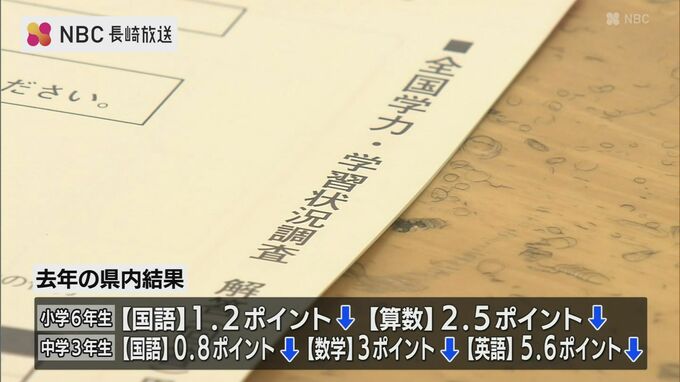 県によりますと英語も調査対象となった去年は全国平均を0.8ポイント~5.6ポイント下回り、特に「条件に合わせて書く」力や「数学的な表現を用いた説明」の力が課題とされました。