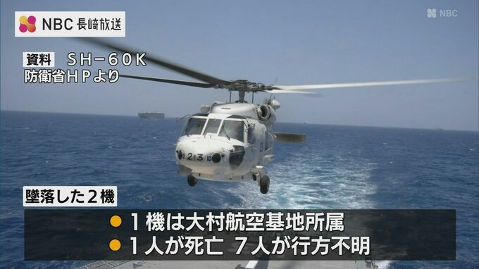 この事故は20日夜、伊豆諸島の東の海域で訓練中だった海上自衛隊のヘリコプター2機が墜落したものです。このうち1機は大村航空基地所属で、2機に乗っていた合わせて8人のうち1人が死亡し、7人が行方不明となっています。