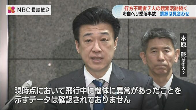 大村航空基地所属の1機を含む海上自衛隊のヘリコプター2機が訓練中に墜落した事故について、防衛省では、フライトレコーダーの解析を進めると共に、行方不明者7人の捜索活動を続けています。