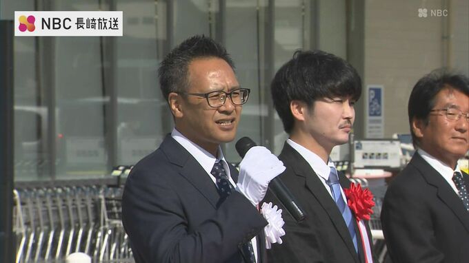 オープニングセレミニーでゆめマート新大村の竹下和弘店長は「全ての方たちに感謝を伝える始まりの一日にしたい。大村の地になくてはならない店になるよう努めてまいります」と挨拶しました。