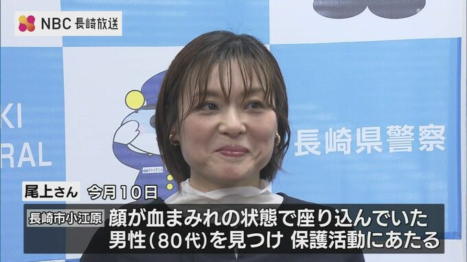尾上菜津美さんは今月10日、長崎市小江原で顔が血まみれの状態で座り込んでいた80代の男性を見つけ、保護したことについて感謝状が贈られました。