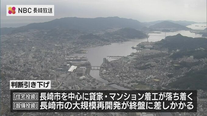 一方、「住宅投資」や「設備投資」については、長崎市を中心に貸家やマンションの着工が落ち着いてきたことや、長崎市の大規模な再開発が終盤に差しかかかっていることなどから判断を引き下げました。