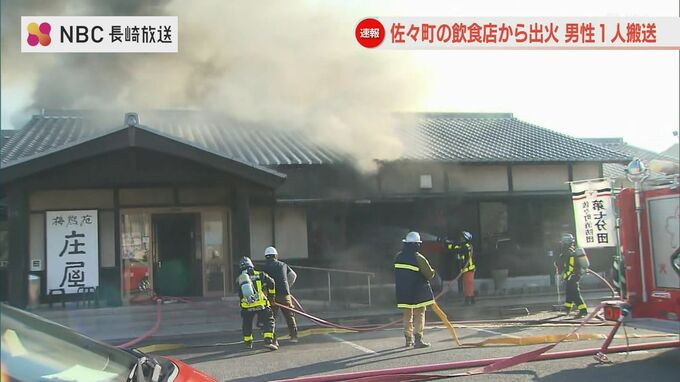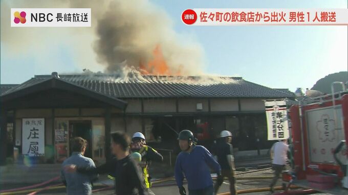 9日午後5時ごろ、長崎県佐々町で、飲食店が燃える火事があり、男性1人が煙を吸って病院へ運ばれました。およそ1時間半後に鎮火しました。