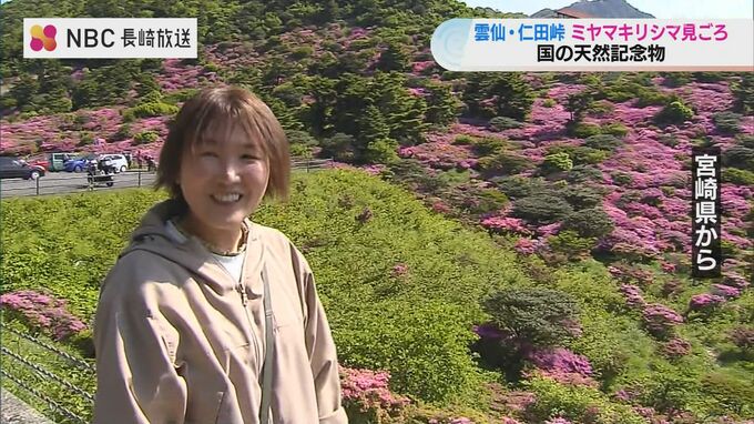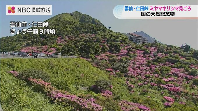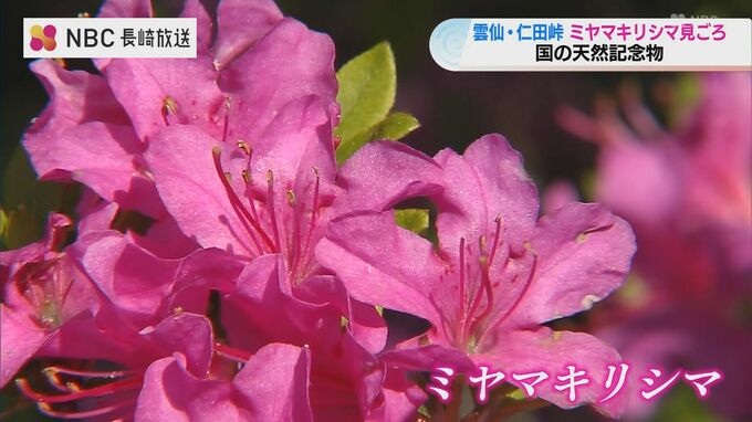 仁田峠ではことし、ミヤマキリシマの咲き始めが先月末からと例年よりも早く、まさに今が見ごろです。