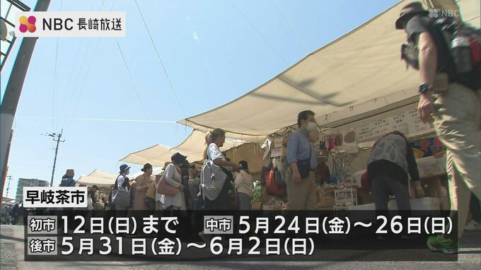 早岐茶市・初市は12日までで、その後、中市(24~26日)、後市(31~6月2日)と開かれます。