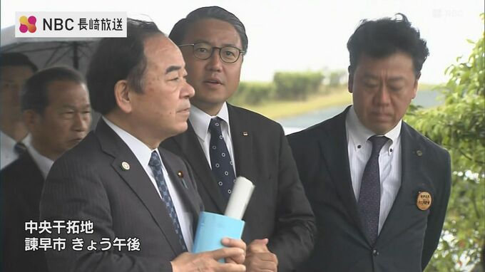 諫早湾干拓事業を巡っては去年3月、当時の農水大臣が有明海再生に向け開門を求める漁業者も含めた「話し合いの場」を設けるとの談話を発表しましたが、今回の視察で開門派漁業者との面会は設定されませんでした。