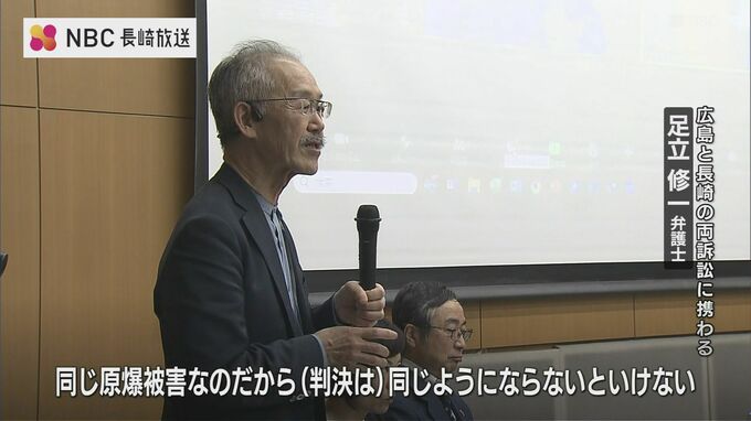 広島「黒い雨」訴訟弁護団長・長崎「被爆体験者」訴訟弁護団の足立修一弁護士は「同じ原爆被害に対して裁判判決は同じようにならないといけない。被爆の可能性があれば被爆者と認めるべき」と話しました。
