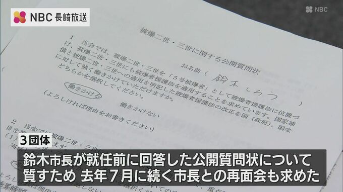 また、3団体は、鈴木長崎市長が就任前に回答した公開質問状について質すため、去年7月に続く市長との再面会も求めました。
