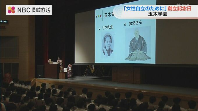創立記念日はこれまで休日としていましたが、女子教育に心血を注いだ玉木リツさんの思いを学ぶため、式典を開催しました。