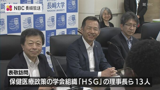 長崎大学を訪れたのは保健医療政策に関する学会組織「HSG」の理事長ら13人です。