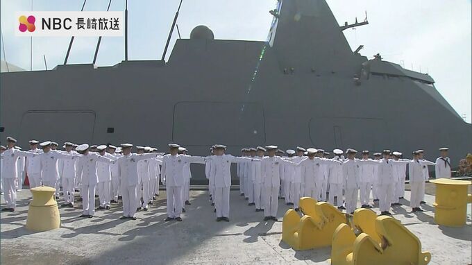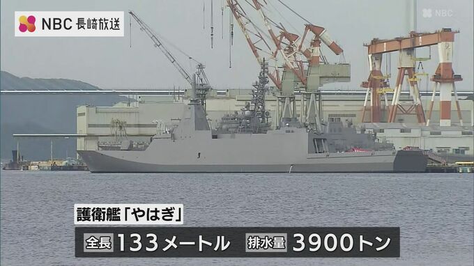 従来の護衛艦の半数ほどのおよそ90人の乗組員で運用できるほか、機雷掃海などの多様な任務への活用が可能です。建造費は6番艦「あがの」と合わせておよそ943億円です。長崎造船所では現在、残り4隻の「もがみ型護衛艦」の建造を進めています。