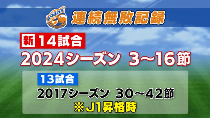 これまでのクラブ記録は2017シーズンにJ1昇格を達成したとき(13試合連続負けなし…30節~42節 うち引き分け数は3)のもの。今シーズンはまだ半分も消化していませんが、J2優勝、J1昇格を期待せずにはいられません。