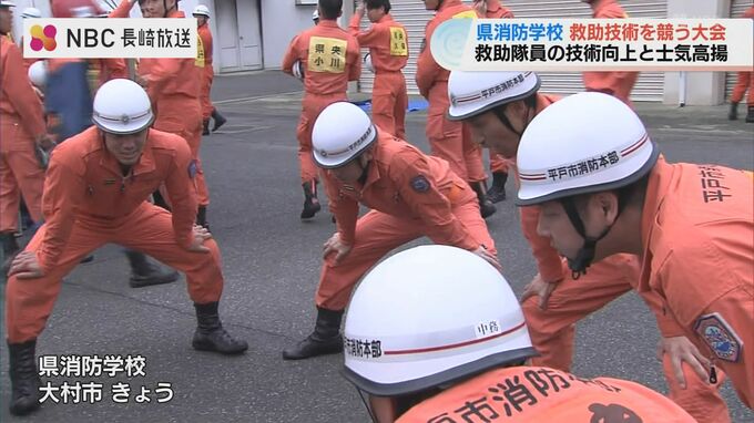 長崎県内の消防本部の代表による救助の技を競う大会が、22日大村市の県消防学校で開かれました。