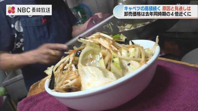 食卓はもちろんちゃんぽんや皿うどんの具材としても欠かせないキャベツ、いま品薄による高値が続いています。品薄の原因や今後の価格の見通しを取材しました。