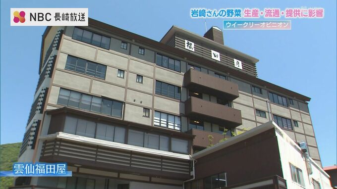 雲仙の温泉街。地元産の有機野菜などを使った料理を提供する「雲仙福田屋」