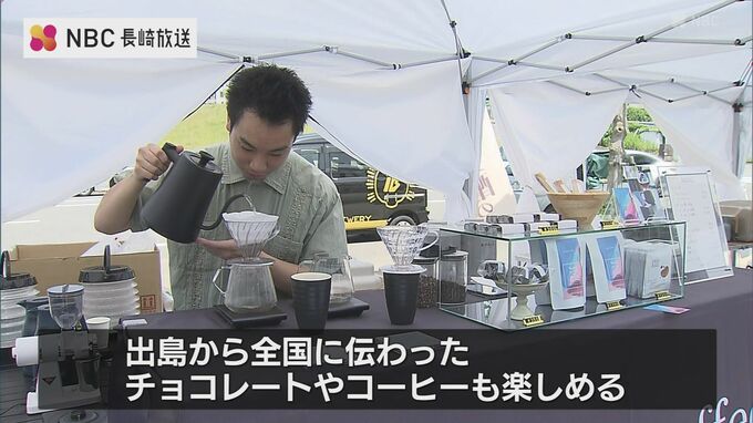 会場内では、伝来の地・出島にちなんでチョコレートやコーヒーなどもアジサイを見ながら楽しむことが来ます。