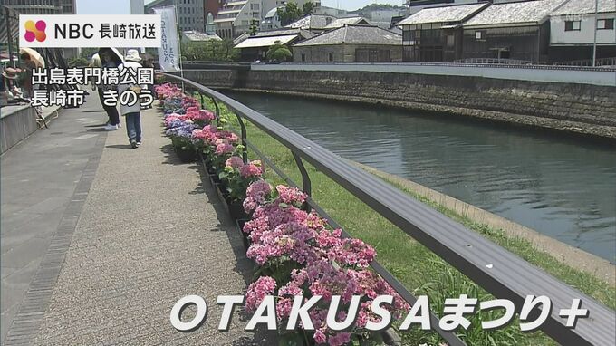「OTAKUSAまつり+」はアジサイを眺めながら長崎の歴史も感じてもらおうと出島表門橋公園で開催されています。