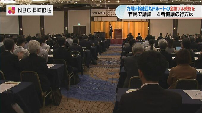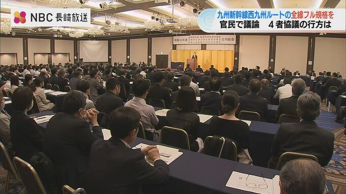 会には、九州新幹線・西九州ルートの(長崎県内の)沿線自治体である長崎市、諫早市、大村市の市長、それに経済界の代表などおよそ300人が参加しました。