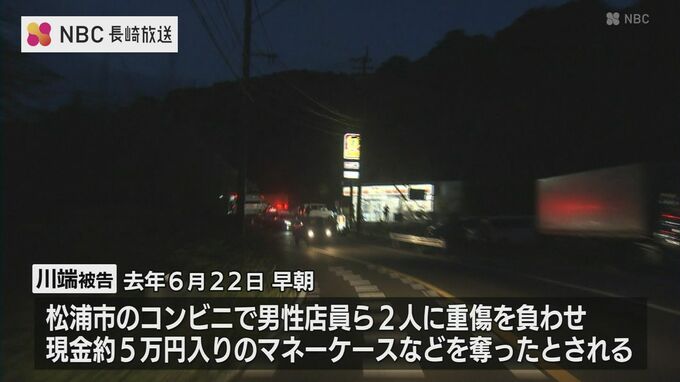 起訴状などによりますと川端被告は去年6月22日の午前4時前、長崎県松浦市御厨町のコンビニに押し入り、男性店員と男性客をバールなどで複数回殴打して重傷を負わせたうえ、現金およそ5万円が入った店のマネーケースと1万円あまりが入った男性客の財布を奪ったとされています。