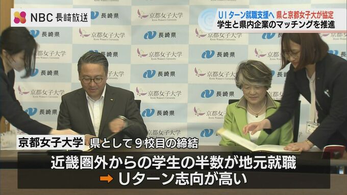 9校目の締結となった京都女子大学は、近畿圏外からの学生の半数が地元就職するなどUターン志向が高く、去年、女子大として初のデータサイエンス学部を新設するなど、企業が求める人材育成に積極的なことで知られています。