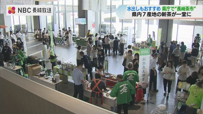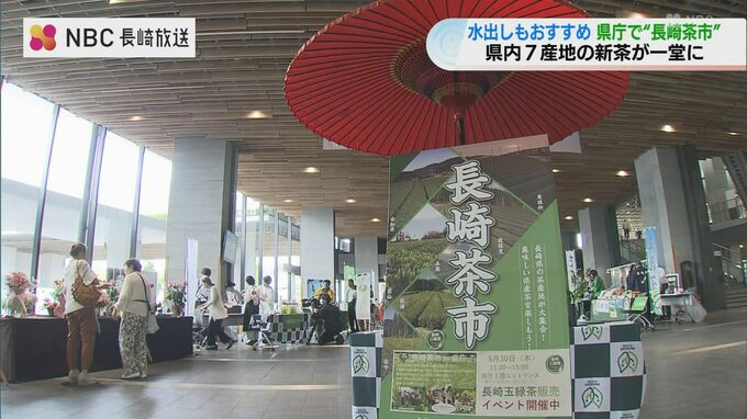 新茶の季節に合わせて長崎県産茶の美味しさを知ってもらおうと、30日、県庁で県内の生産者による「長崎茶市」が開かれました。