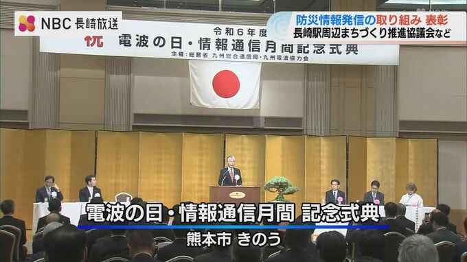 電波の利用や情報通信の発展普及に貢献した九州の個人・団体を表彰する式典が熊本市で開かれ、NBCなどでつくる協議会の防災情報発信の取り組みが表彰を受けました。