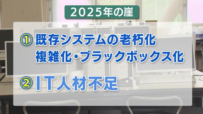 これまでのシステムに詳しい人材が定年退職時期を迎えていて、昔のシステムが分かる人がいなくなっているという問題です。先進の技術を学んだ若い人材を確保できたとしてもシステムが古いままだと、能力が活かしきれません。