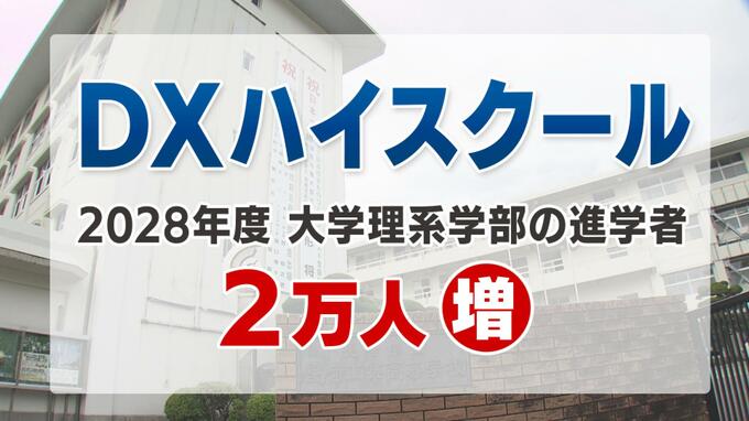 【平】国は今年度から高校でのデジタル教育を推進しようと、「DXハイスクール」の指定を始めました。2028年度に指定校から大学の理系学部への進学者を2万人増やす計画です。DXハイスクールに指定されるのは、全国およそ1,000校で、1校につき最大1,000万円が補助されます。