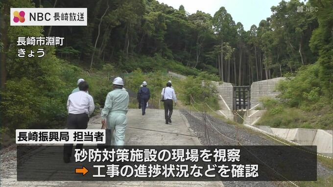 長崎振興局の担当者らは、土石流の発生が懸念される長崎市淵町の砂防対策施設の現場を視察し、工事の進捗状況などを確認しました。