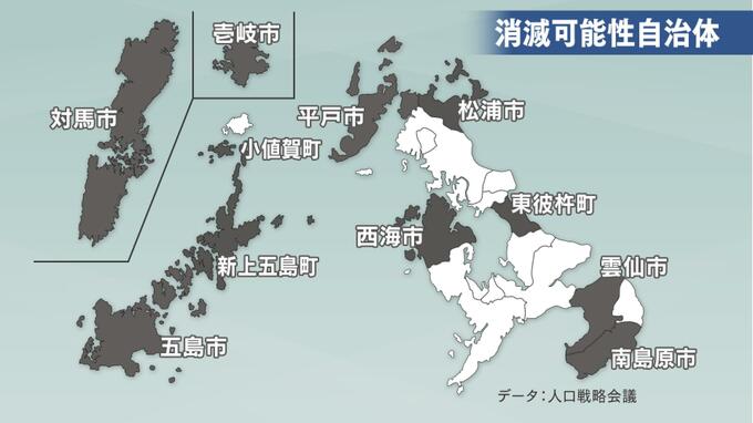 今回、この「消滅可能性自治体」に該当すると指摘されたのは、長崎県内21市町のうち以下の《8市3町》です。