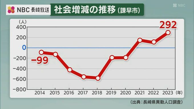 これまでの取り組みにより諫早市ではここ3年、転入者が転出者を上回る「社会増」が続いていて、去年は292人の増加となりました。