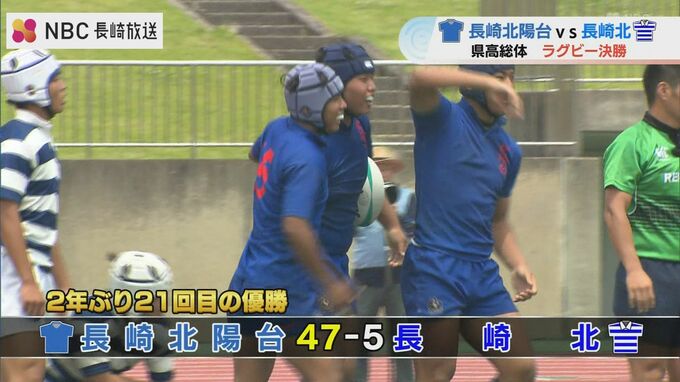 前・後半で7つのトライを奪った北陽台が47対5で勝利し、2年ぶり21回目の優勝に輝きました。