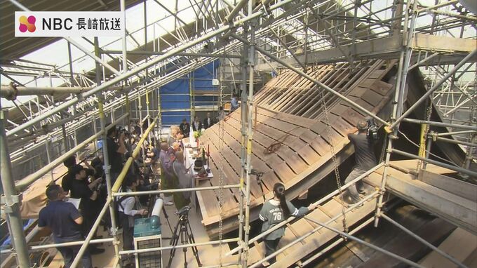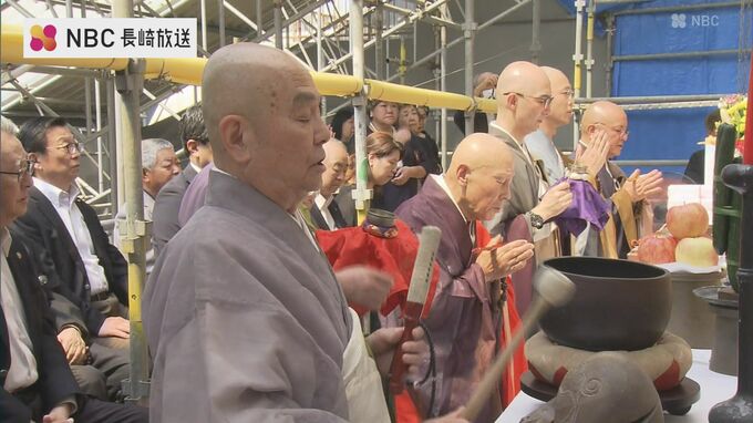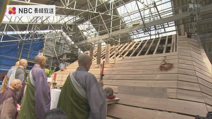 国の重要文化財で340年以上の歴史を持つ長崎市の聖福寺で、修復工事が行われていた「山門」の上棟式が12日行われました。