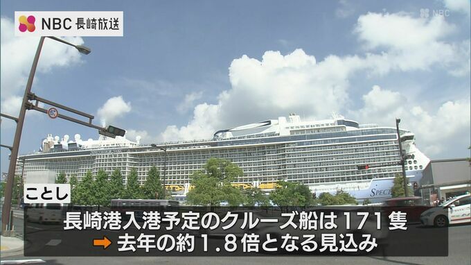 長崎港へのクルーズ船入港は、新型コロナウイルスの感染拡大の影響でおととしはゼロになりました。去年は3月に外国船の入港が再開され年間96隻が入港。ことしもすでに71隻が入港しており、年間では171隻、去年のおよそ1.8倍となる見込みです。