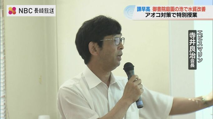 この取り組みに浄化装置などを製作する地元・長崎の企業が協力し、池の水質改善を行いながら、社会課題の解決へのアプローチ方法を学ぶ特別授業が行われました。